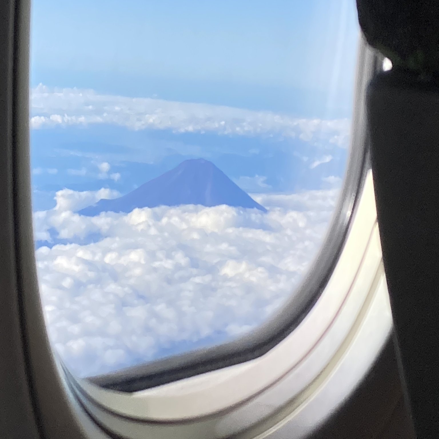 往路の便は、ほぼ満席状態でした。長崎行きは福岡方面に進路を取るので、山梨側からの富士山を眺めることができます