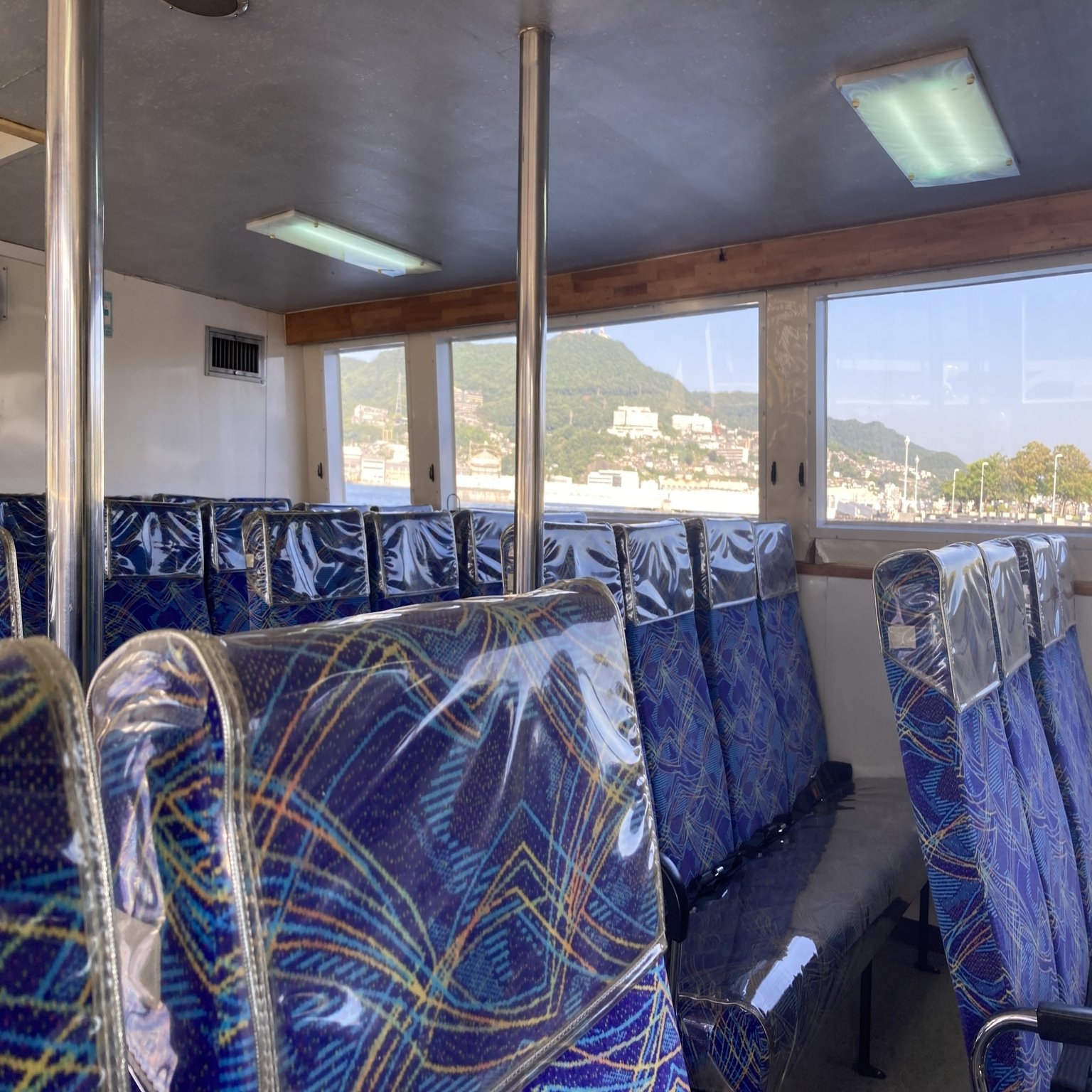 ぼーっと立っていたら、スタッフが準備に集まってきて、明るく挨拶をしてくれました。とても気分が良いですね。またテキパキと受付も開始してくれて、スムースに乗船できました。船内で予約確認と代金の支払いを済ませて、座席を選びます。自由席なので、好きな場所を選びたいなら早めに行くのが吉です。