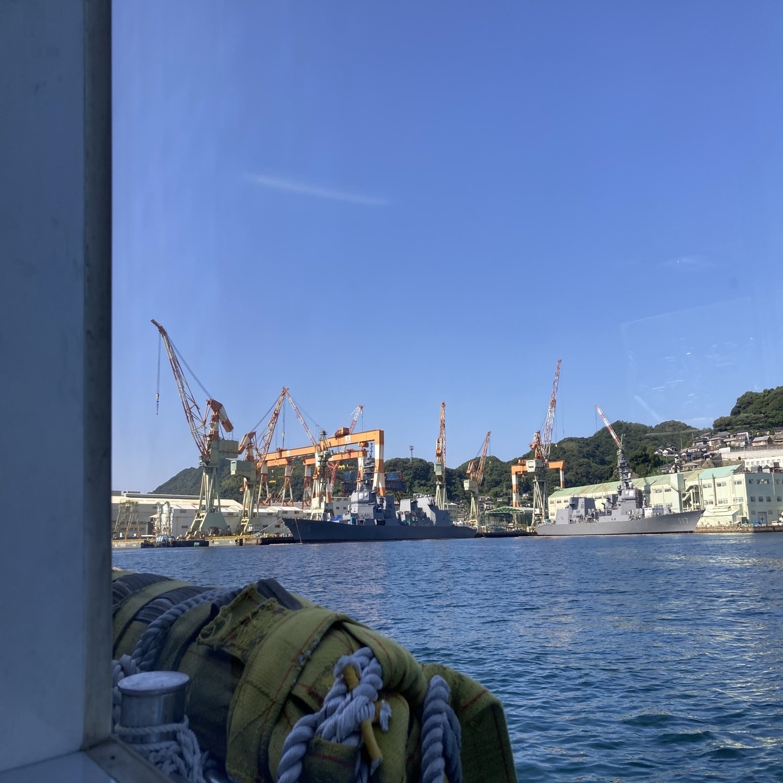 旧三菱財閥(現三菱重工業長崎造船所)の歴史遺産群を眺めながら、女神大橋を潜って外洋に出ます。
