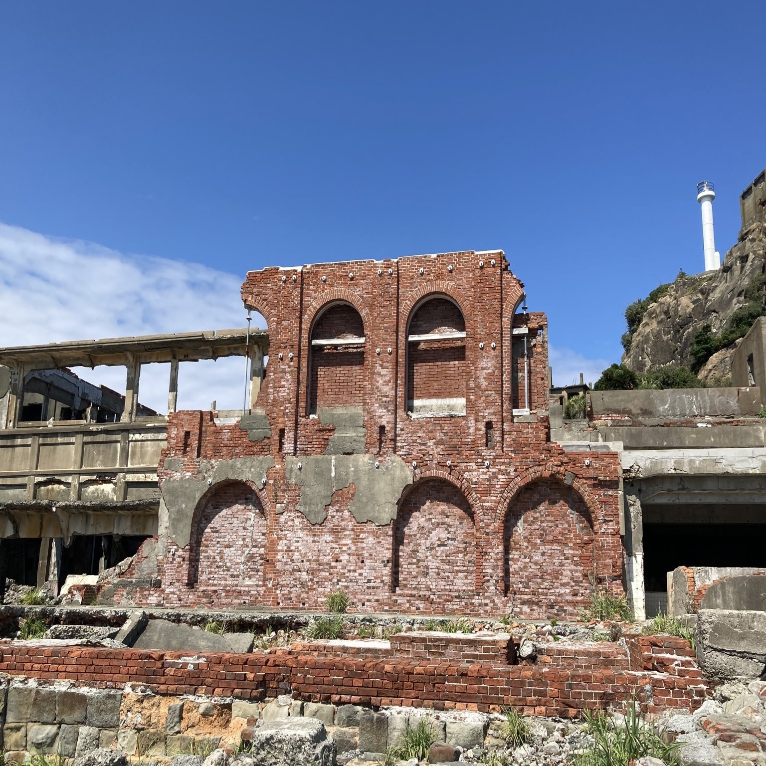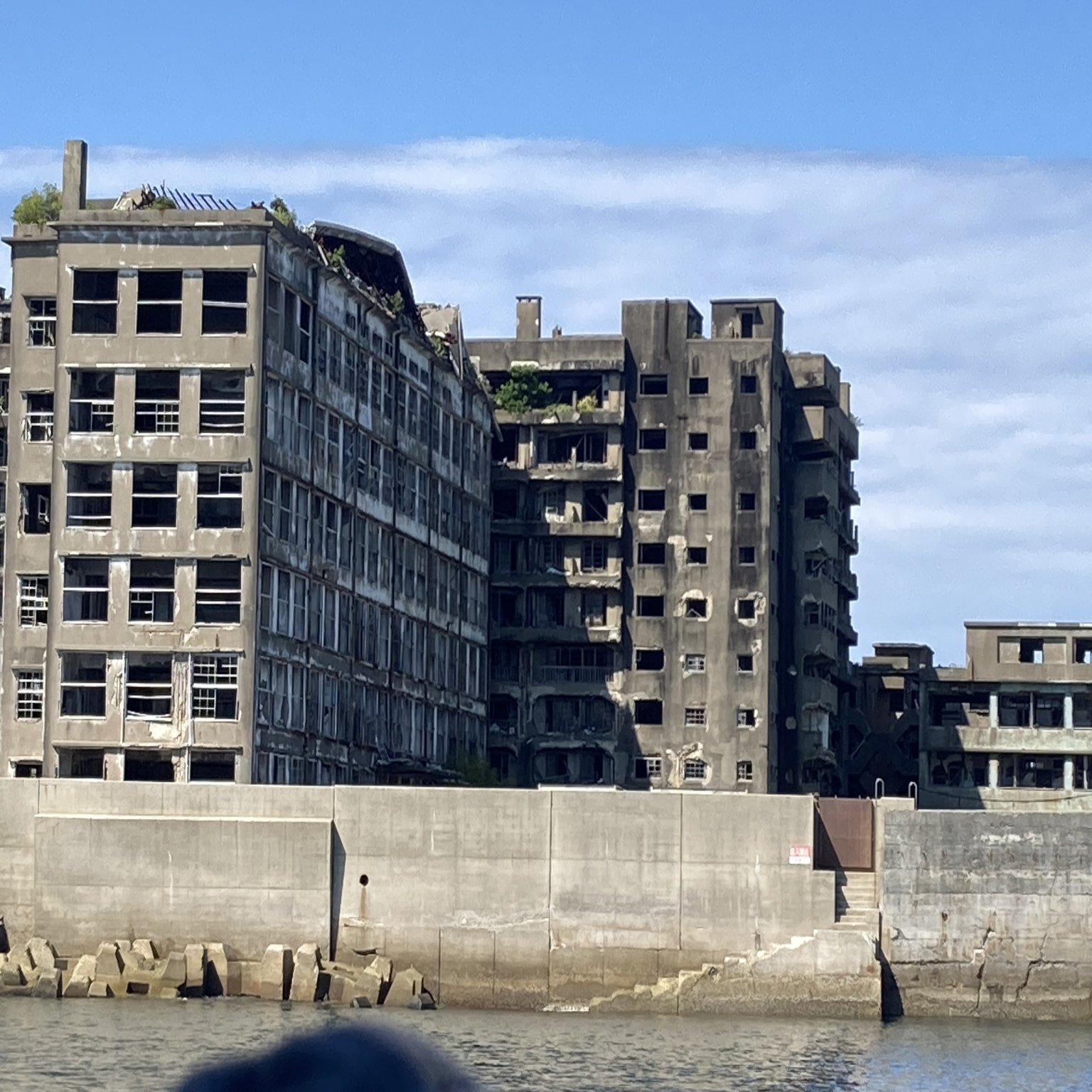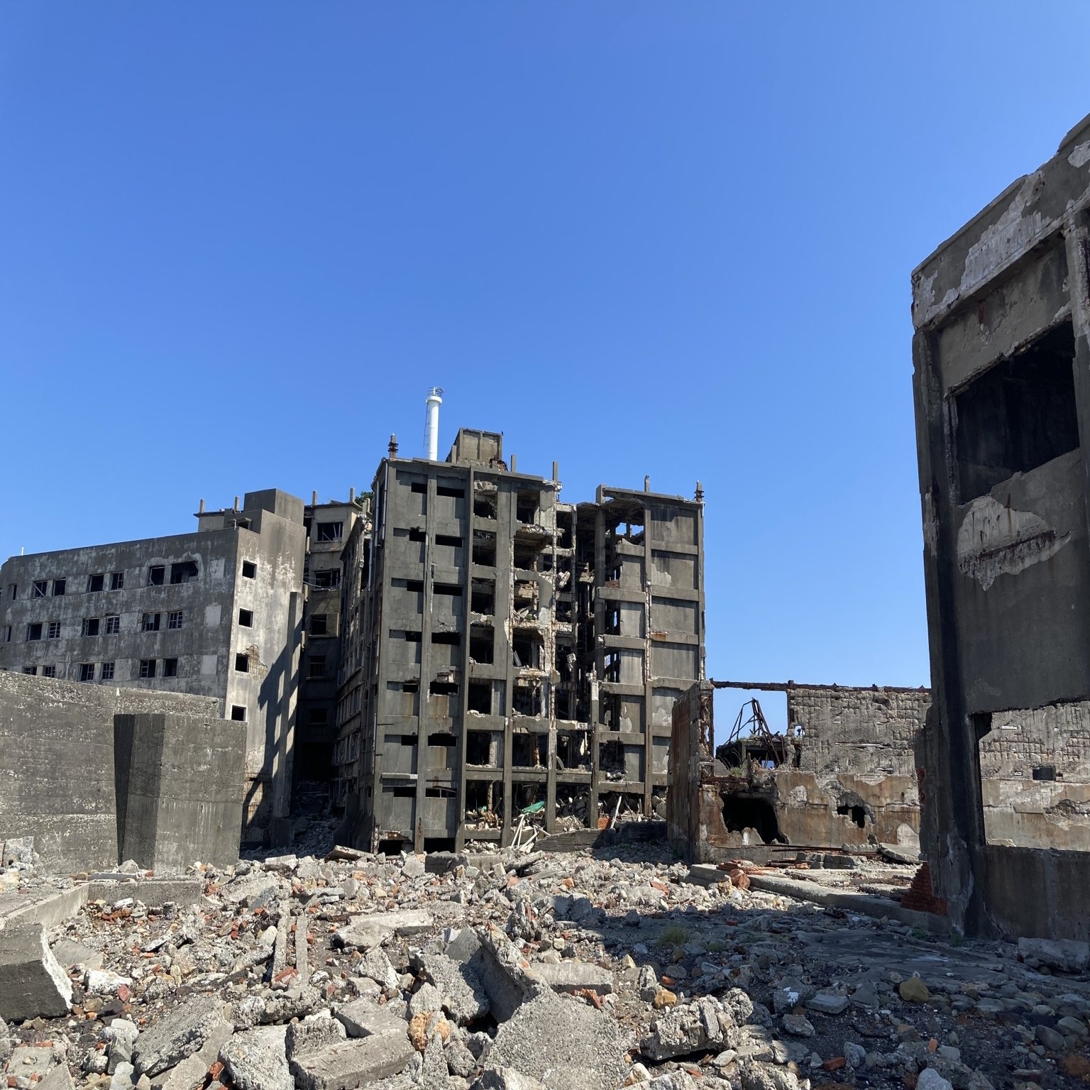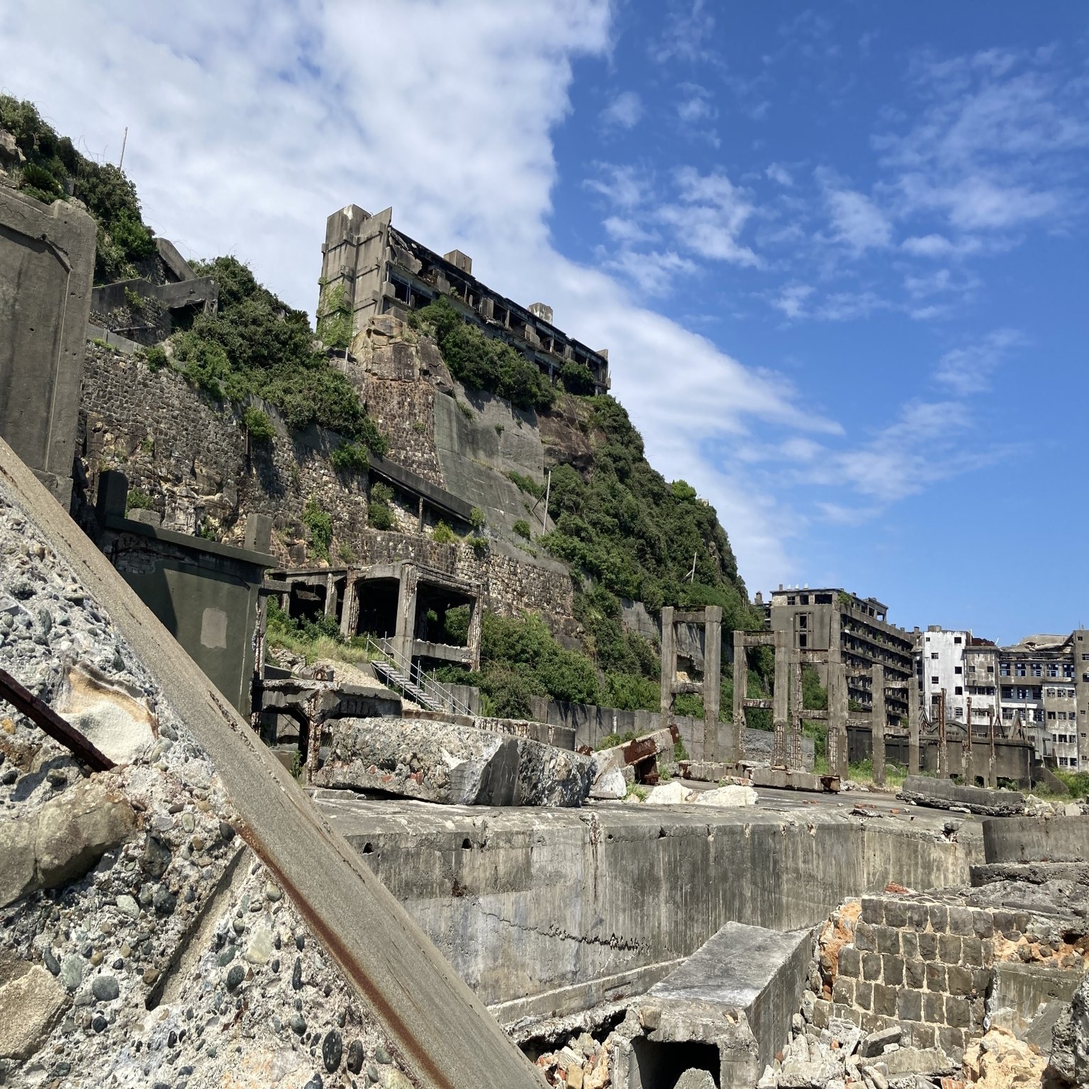 島内の建物は崩壊が進んでいて、かなり移動が制限されていました。見学できたのは、島の南側で建物を避けた外周部のみ。3箇所に分かれて、ガイドさんが島の歴史や目の前の建物(瓦礫)について説明してくれました。ガイドさんは噺家と思うほどテンポよく、小気味良く話を進めてくれるので聞き入ってしまいました。